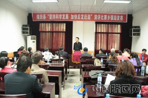 11月10日,隆回县“坚持科学发展 加快后发赶超”演讲赛乡镇组复赛在先老干局会议室举行,来自全县25个乡镇的26名选手参加了比赛,除桃洪镇是第一批试点单位没有派选手参加外,其他乡镇都派出了1到2名选手参加。