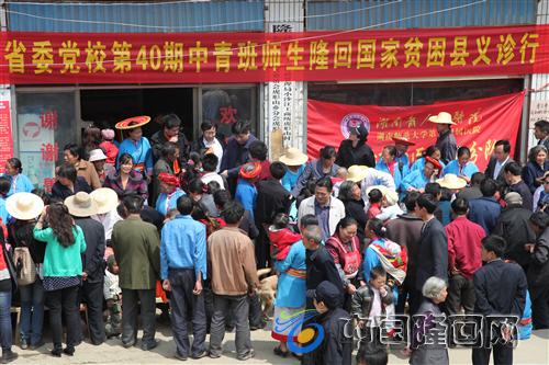 4月26日,由省委党校第40期中青班第六(党)学习小组带来的省人民医院仁术心连心医疗专家队为村民送医送药免费义诊活动来到了虎形山瑶族乡。该乡地处高海拔山区,距离县城107公里,医疗设施极其落后,群众疾病预防意识差,风湿病、肺结核等疾病发生概率高。省委党校第40期中青班第六学习小组得知这一情况后,为解决当地群众就医难的问题,特组织省人民医院10名专家赴瑶乡开展义诊活动。