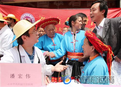 “我儿子有救了,感谢人民医院的专家们”,来自虎形山瑶族乡周朋村五组的彭民清感激地说,他一个一岁半的儿子患有先天性心脏病,久治不愈,今天省人民医院的义诊医疗分队为他解决了心病,让他带着儿子去省人民医院接受免费治疗。