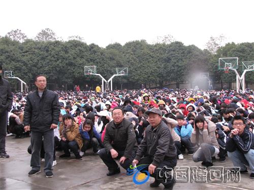 2011年12月14日下午4:20分,随着指挥长的“演练开始”命令的发出,防空袭警报在隆回第二中学天空鸣响,隆回县人防办、隆回二中联合组织开展的防空疏散救护演练活动正式开始。5000多名学生按演练方案快速、有序疏散集结。路线导向、抢险救护、后勤保障人员迅速就位开展工作。不到3分钟时间,学生全部疏散集结到指定地点。经清点人数,发现个别同学未疏散到指定位置,救护车立即出动,并进行现场搜索救护。