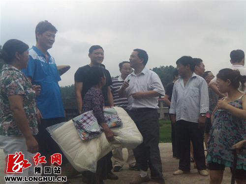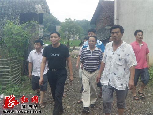 隆回县民政局局长钱水平(右三)在塘冲村慰问受灾群众