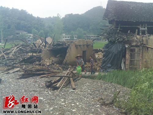 中国隆回网7月18日讯(通讯员 漆恋恋)7月18日上午11时,满脸哀愁的肖大娘一边收拾着被水浸透的物品,一边对着倒塌的房屋黯然流泪。忽然看见不远处有几个人慢慢走近,隐约地听说是省领导,她赶忙擦了擦眼泪,向来人说道:“领导,这原本是我们家两代人唯一的住处,可现在连这个住处都没有了,以后我们怎么办呐?”
