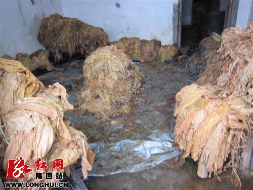 申大叔家烤好的烟叶几乎全被洪水浸泡过
