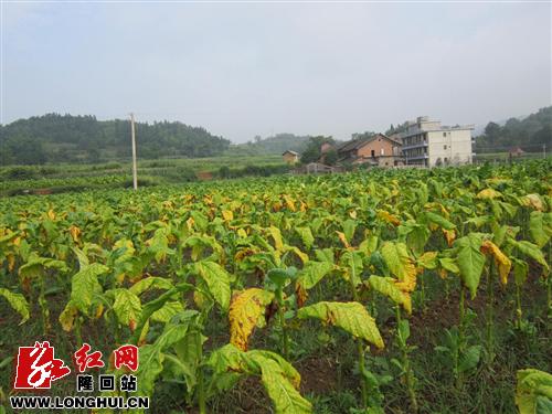 7月19日大坡村被洪水浸过后成片枯死的烟叶