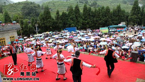 花瑶民俗表演队演出舞蹈《花瑶呜哇山歌》