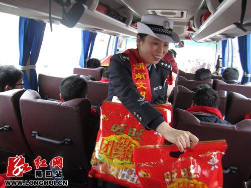 春节临近,多少游子归心似箭但却一票难求,回家的路上变得异常艰辛。2013年春节前,湖南省公安厅交通管理局、长沙公安局交警支队联合大湘网,发起了“交警护航 送爱回家”爱民服务活动,8辆爱心大巴分8条线路将买票难的学生、外出务工者免费送回家。
