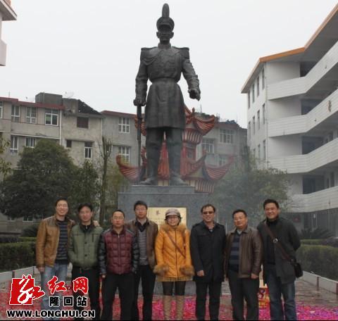 图为正月初六上午,来自深圳、北京、长沙、隆回等地的一中校友瞻仰蔡锷铜像