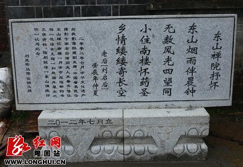 据了解,老后《东山禅院抒怀》诗是去年他在东山禅院创作《花瑶女儿箱》书稿时写的,此次刻碑由我县民营企业家刘光宗先生资助。这是继匡国泰之后的第二块文化诗碑立于大东山,为我县名山胜景增添了文化景观。