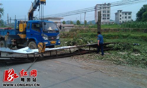 从5月1起,隆回县公路局路政大队对辖区公路路域环境展开了为期一个半月的龙门架专项整治,对沿线公路存在一定的安全隐患的非公路标志和龙门架进行了彻底排查。近日,对排查出的隆回电力局在G320K1409+300m路段设置的龙门架依法进行强制拆除,彻底排除该龙门架存在的安全隐患,确保广大群众快捷、安全、出行。