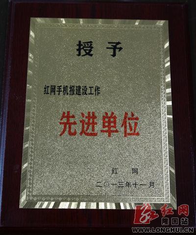 红网手机报建设工作先进单位奖牌