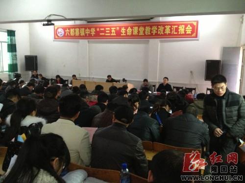 隆回新闻网http://www.longhuinews.com/讯 12月12日上午,六都寨中学“二三五”生命课堂教学改革汇报大会在该校多媒体汇报厅举行,全县26个乡镇中心校的教学副校长,63所中学的校长,临近乡镇的领导、老师,市教科院、县教育局、教研室以及进修学校的领导、老师近300人参加。