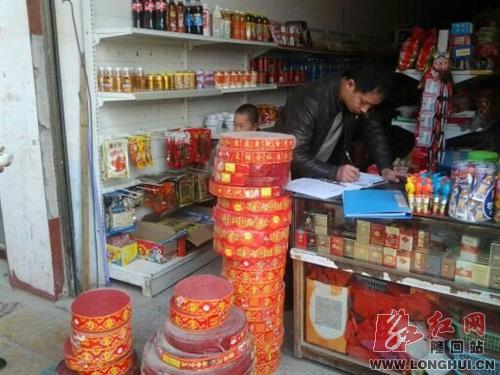 图为安监站成员对烟花爆竹商店进行检查登记