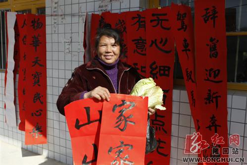 村民拿着对联满心欢喜