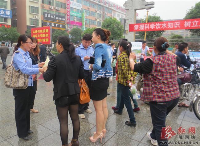 5月12日至19日是第三个全国饮用水卫生宣传周。5月19日,隆回县卫生监督所在县城九龙广场开展了2014年饮用水卫生宣传周活动。活动宣传主题为“关注饮水卫生,共享健康生活”,旨在向公众宣传饮用水的卫生知识,教育群众养成不喝来源不明的水等良好的饮水习惯,时刻注意饮水安全,防止病从口入。