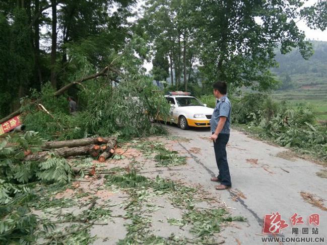 上午10时30分,路政大队一中队巡查至乡道桃双线K9+800M处时,发现有人在公路一侧砍伐自留地树木,树木横倒在公路上,占据了半幅路面,严重影响了公路交通安全。路政执法人员当即采取措施,在倒塌树木前后50米处设置警示标志,同时协助当事人迅速将树木及时清除出路面,保障了公路的安全畅通。