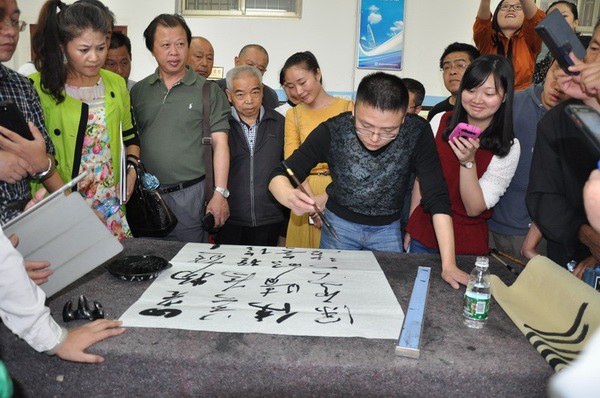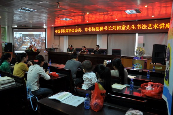 隆回新闻网讯 9月19日,隆回县校外教育中心启动“九龙文艺讲坛”活动,县书法家协会与县校外教育中心联合邀请中国书法家协会会员、邵阳市书法家协会副秘书长刘如意来隆讲学。县书法家协会会员代表、师生书法爱好者100余人聆听了“书法临帖及创作技巧”的专题讲座,并现场观摩刘如意书法创作。县委宣传部副部长阳黎应邀出席。