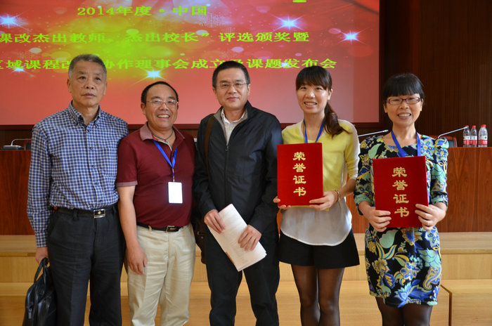 为把课程改革的目标和立德树人的要求融为一体,把中小学日常教育教学活动与全面提升公民核心素养紧密结合,切实办好每一所学校,教好每一堂课,让每一位学生健康成长、快乐成长,今年年初,中国新课程研究院、九三王选关怀基金会、中国教师报、腾讯教育联合,面向全国发起2014年度中国“课改杰出教师、课改杰出校长”评选活动。此次评选活动得到了全国28个省份132个区县教育局的响应,共推荐了227名符合条件的校长和教师参评。经过初评、网络评审、专家背对背终评三轮评审以及公示环节,最终产生获奖人名单。全国仅有25名教师获得2014年度“课改杰出教师”荣誉称号,30名校长获得“课改杰出校长”荣誉称号。