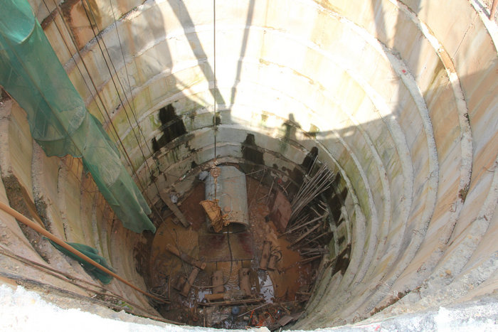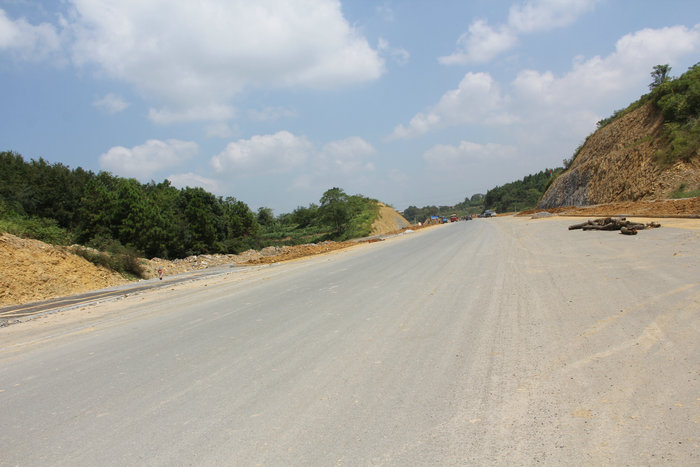 图为隆回大桥南岸扩孔及道路互通工程建设现场
