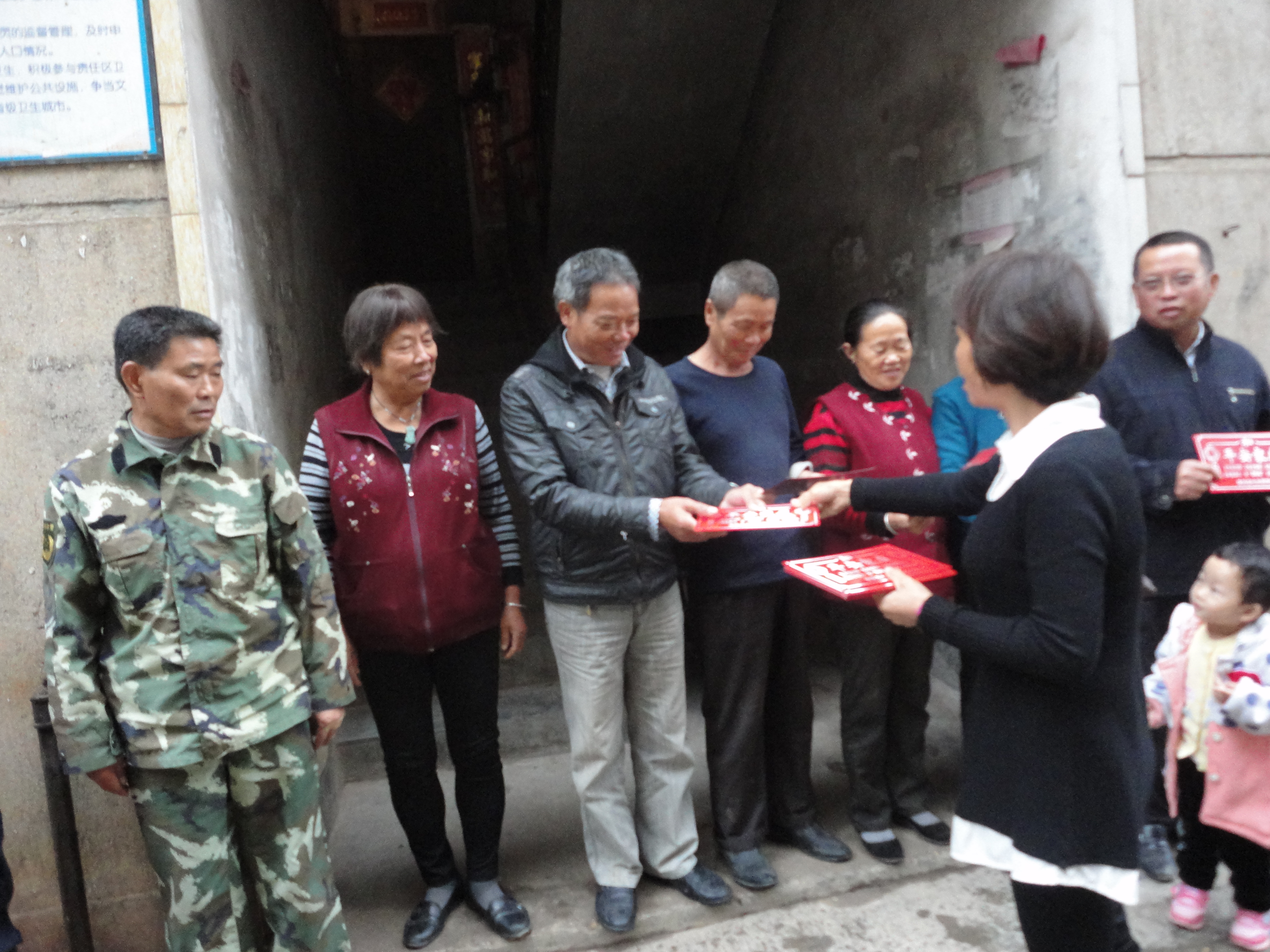 10月30日,桃洪镇新隆社区主任蒋小妹带领社区干部为该社区评选出的郭世金、龙际继等161户平安家庭授牌。