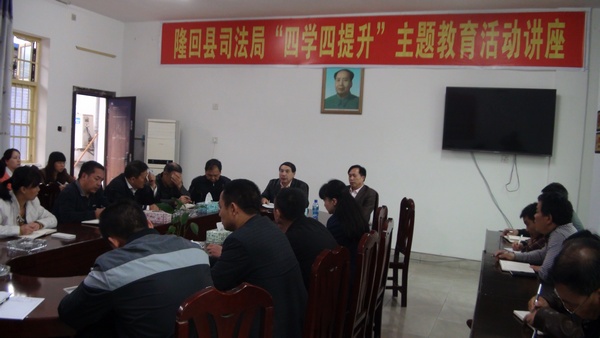 10月30日下午,隆回县司法局举办“四学四提升”主题活动讲座。县委宣传部副部长阳黎应邀作了以“依法治国”为主题的“中国梦”讲座。
