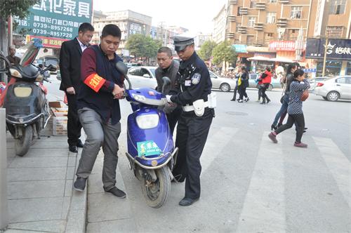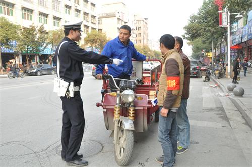 图为对逆向行驶的三轮车进行劝导