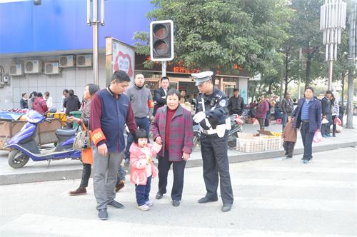 图为劝导老人、小孩安全过马路