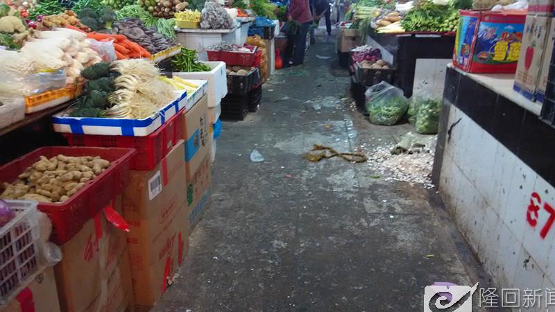 朝阳市场内还得努力,过道被商贩货物占领了的三分之一地面全部是泥,不下雨也得小心打滑。