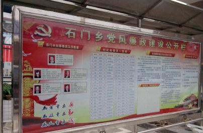 为进一步加强廉政文化建设,营造“为官重在廉、为政重在勤、为人重在诚”的良好风尚,石门乡于近期乡更新了党风廉政建设公开栏的内容。其中明确了乡纪委委员的职责,并公布了42个村纪检委员的名单。