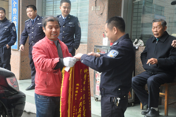 受害人家属将锦旗送给民警