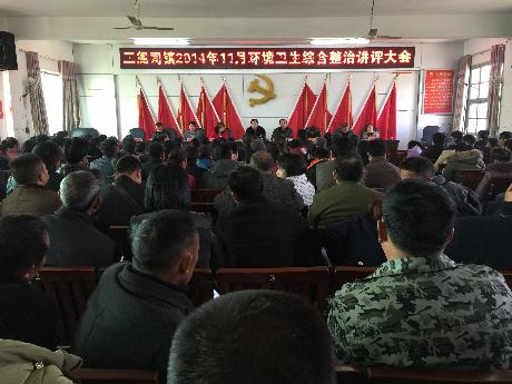 图为三阁司镇召开2014年11月份环境卫生综合整治讲评大会现场