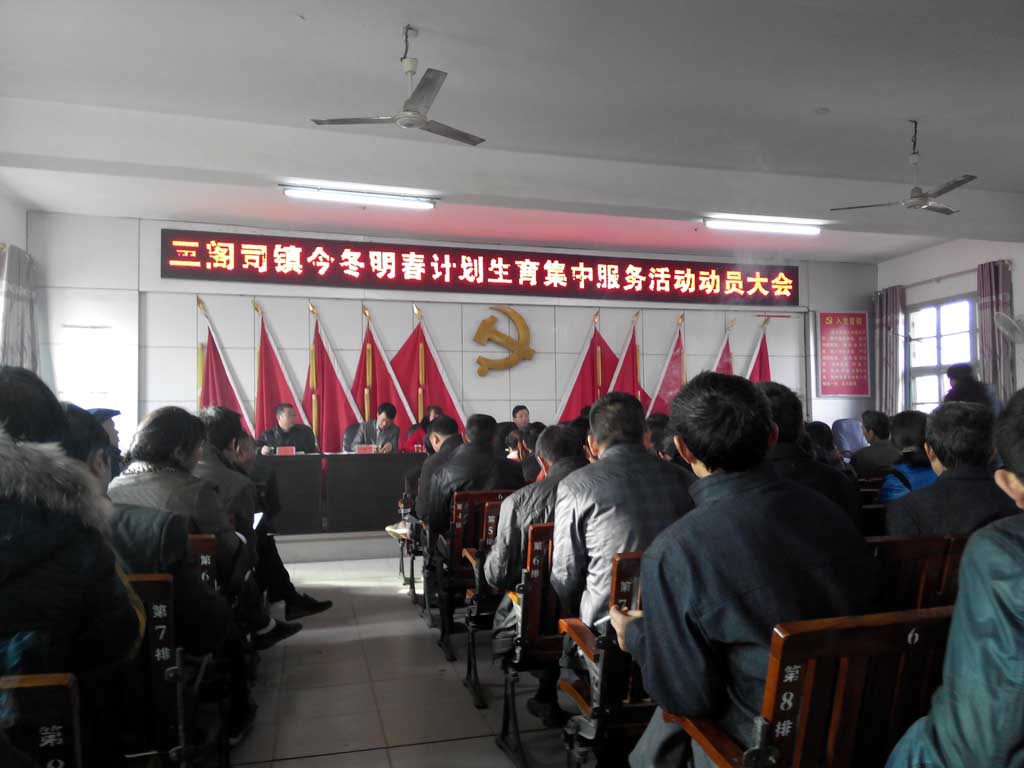 12月1日上午,三阁司镇召开2014年冬季及2015年春季计划生育服务活动动员大会,镇全体干部职工、部门单位负责人、55个村(居)的固补干部参加会议。