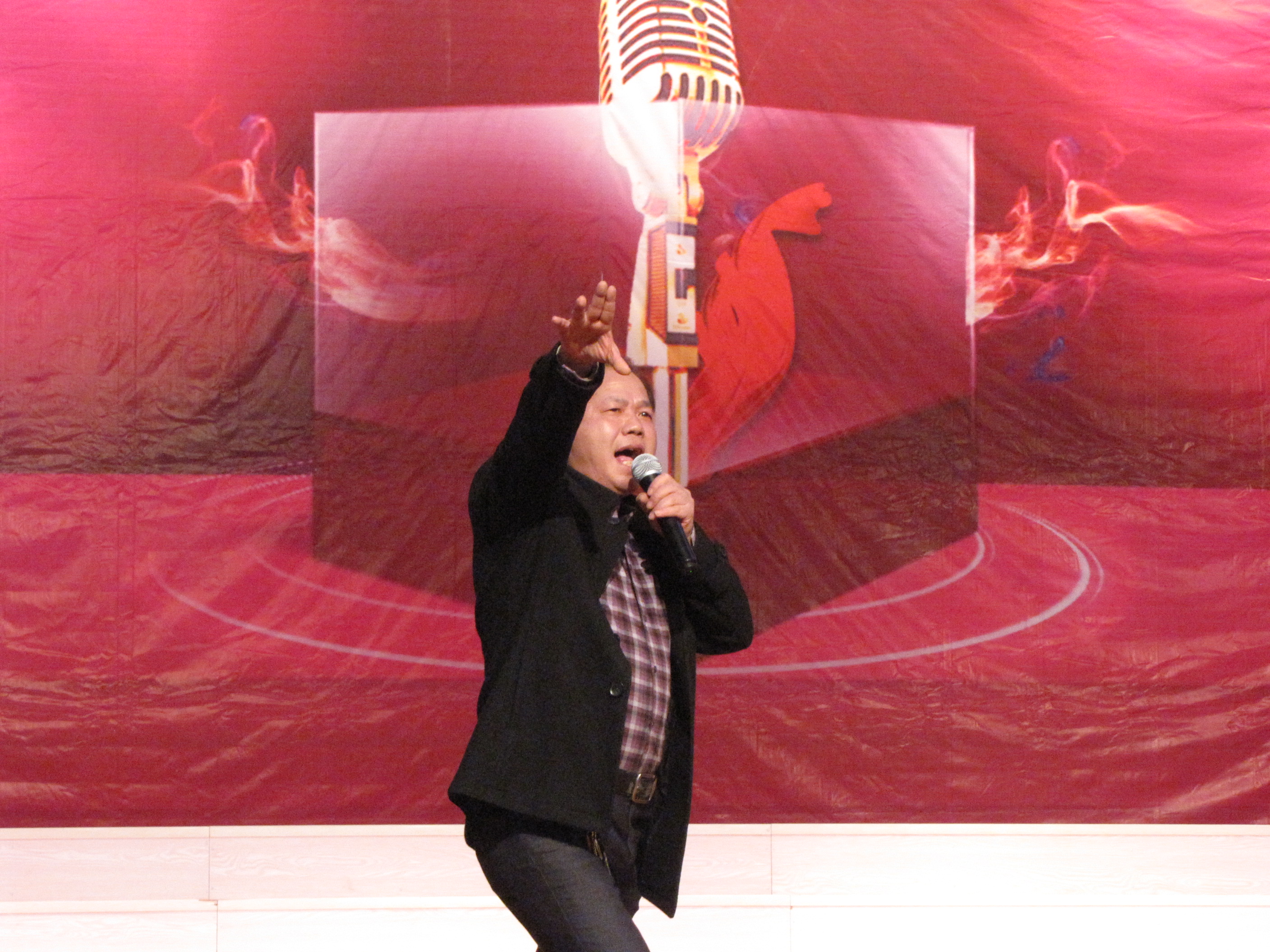 图为范晓斌老师激情演唱《众人划桨开大船》