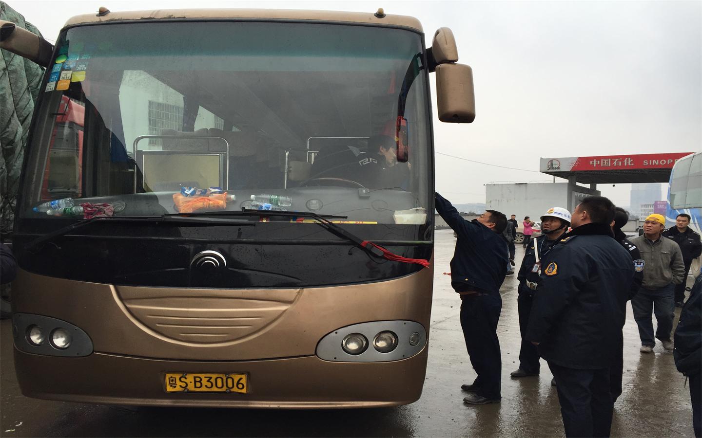 3月16日(正月十六)上午,在县高速公路入口加油站,一台车号为粤SB300X的大客车因为拒不接受执法人员的检查、拒不提供相关证件,被依法强制扣车。现场执法的运管、公安、交警多次做驾驶员思想工作,请其配合检查,提供有效春运证件,但是该车主关闭车窗及车门,拒不配合,现场交警通过联网系统调查了该车车牌信息。目前该车驾驶员及承包车主正在接受进一步调查。