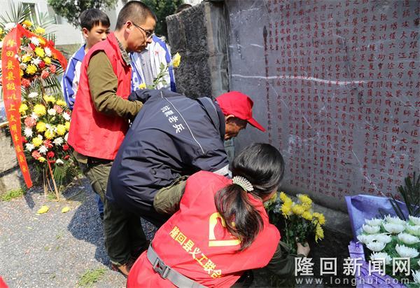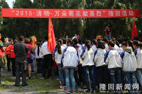 隆回新闻网讯 (记者 杨汝舒)【欢迎关注隆回新闻网微信公众号——天下隆回】 4月2日上午,“老兵之家”公益志愿者团队联合隆回县九龙学校、隆回县义工联合会来到位于桃洪镇双井社区和尚岭的抗日阵亡将士公墓开展“2015清明·万朵菊花祭英烈”活动,隆回本土抗战老兵也参加活动。