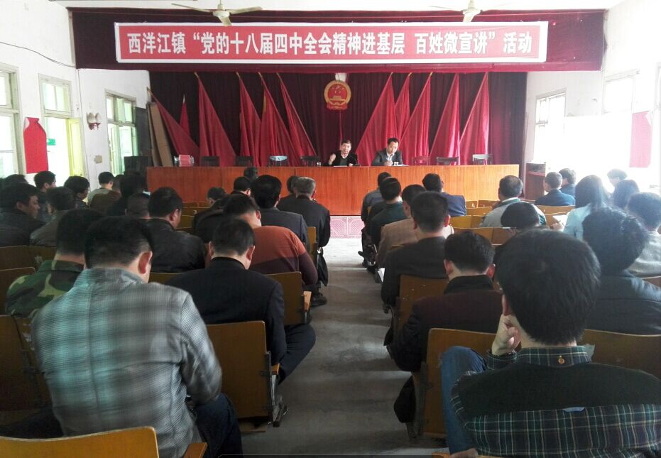 隆回新闻网讯 (通讯员 贺黔梅)【欢迎关注隆回新闻网微信公众号——天下隆回】法无授权不可为,法定职责必须为。4月17日,隆回县西洋江镇开展“党的十八届四中全会精神进基层 百姓微宣讲”活动。