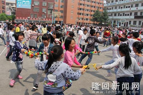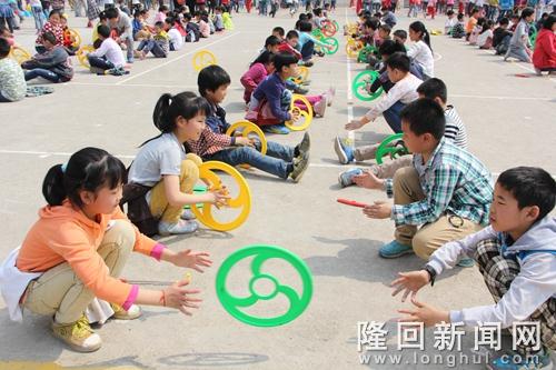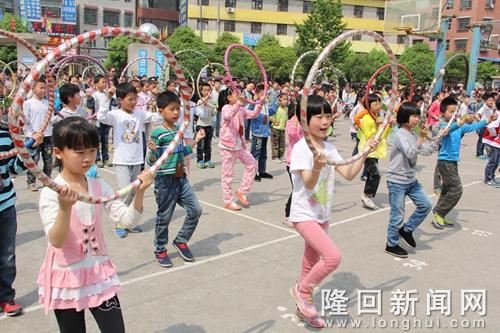 隆回新闻网讯 (通讯员 罗理力)【欢迎关注隆回新闻网微信公众号——天下隆回】4月17日大课间活动时间,湖南省隆回县桃洪镇东方红小学学生在操场上尽情运动、游戏。近年来,该县30余所中小学校把兔子舞、滚铁环、滑旱冰、钻洞、接力传球、跳绳、摇呼啦圈等融进大课间活动,趣味体育红火校园。
