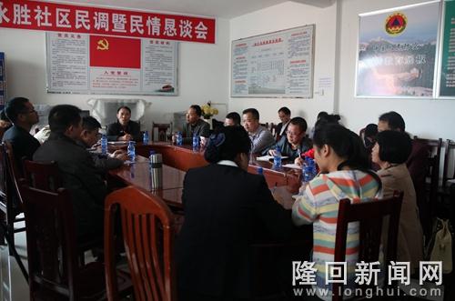 隆回新闻网讯 (记者 卿蕾)【欢迎关注隆回新闻网微信公众号——天下隆回】4月22日下午,县委常委、组织部长、统战部长周玉祥,县委常委、副县长胡陵,副县长、县公安局局长李小宁,正县级干部、县人大常委会党组成员李喜堂到桃洪镇永胜社区召开民情恳谈 会。