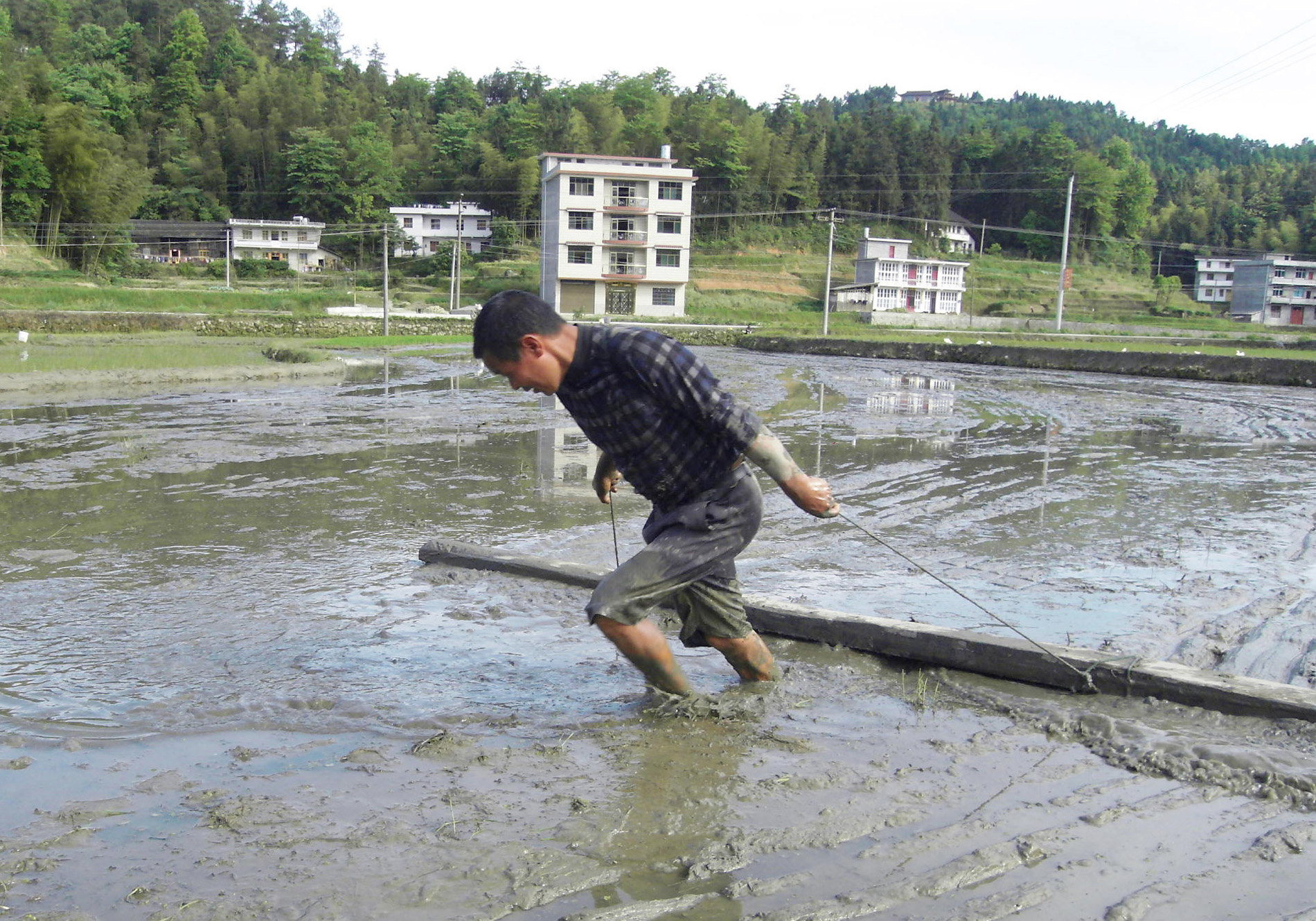 5月10日,金石桥镇五罗村2组村民李友书在责任田平田。今年,该镇狠抓粮食生产,着力遏制耕地抛荒,确保全镇中稻面积落实率达95%以上。