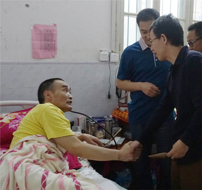 最近《邵阳日报》报道了六都寨镇港口村党支部书记刘立和身患重病,在手术后伤未痊愈的情况下仍然心系村里事务、坚持工作一线的先进事迹后,县委常委、组织部长、统战部长周玉祥了解情况后,深受感动,第一时间派县委组织部副部长李梦昭等干部到港口村看望慰问刘立和同志。