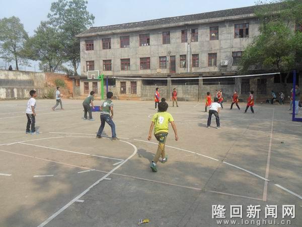 隆回新闻讯(通讯员 马克) 5月12日上午,隆回县北山镇中心校在北山中学球场举行了全镇初中生排球比赛。来自北山中学和云峰中学的排球队参加了比赛,比赛采用男女队混合三局两胜制,经过三局角逐,北山中学排球队获得第一名。图为排球队在比赛: