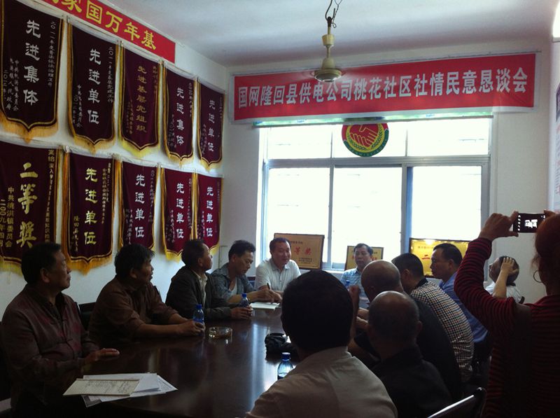 隆回新闻网讯 2015年5月14日,隆回电力公司党总支书记宁安贵率公司共产党员雷锋服务队深入桃洪镇桃花社区,召开社区群众恳谈会并走访慰问困难群众,以实际行动进一步推进“三联二访一帮”工作的开展。恳谈会由桃花社区书记孙立荣主持。