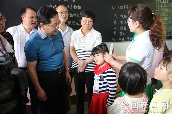 隆回新闻网讯 5月17日是第25个全国助残日。当天上午,隆回县委副书记、县长马健强率县教育局、民政局、人社局、编委、残联、财政局、桃洪镇等主要负责人一行到县启智聋儿康复学校和县特殊教育学校进行慰问并现场办公。副县长刘芬、奉锡样,县政府副调研员罗晓光陪同。