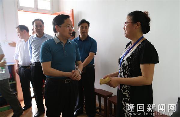 马健强一行随后来到县特殊教育学校,详细了解学校双语教学和学生技能培养等情况。在学生作品展览室欣赏了学生们的画作和手工作品后,马健强连声称赞孩子们心灵手巧。据悉,隆回县特殊教育学校是一所集聋哑、智障学生为一体的九年义务教育寄宿制学校,承担残障儿童、少年的康复及教育教学任务,包括“送教上门”和随班就读跟踪工作,现设培智部、语训部、双语部、聋部等9个班级。现有教职工22人,在校学生152人,“送教上门”学生30人。该校先后获得了“湖南三八红旗单位”、“湖南特殊教育学校先进单位”等荣誉称号,2014年中国残疾人联合会党组成员、副理事长程凯在该校调研时称其为“国内的典范”。
