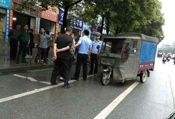 19日下午,隆回交警大队桃花坪交警中队民警全体出动,在城区范围内开展三轮摩托车非法载客营运专项整治行动。桃花坪中队中队长雷武展带领一组民警巡逻至县城桃洪西路德铭医院附近时,发现一台无号牌三轮摩托车正在上下客,民警立即向前询问检查,司机胡某一直反锁车门,拒绝下车配合检查。民警王子军绕到三轮摩托车后疏导车厢内乘客下车。大约半分钟后,司机胡某不顾车上乘客与民警安全,加大油门往后倒车,企图撞开车后侧的王子军逃离现场。因躲闪不及,王子军右手手腕被刮伤,顿时血流不止。见此情形,现场民警立即将司机胡某控制住。