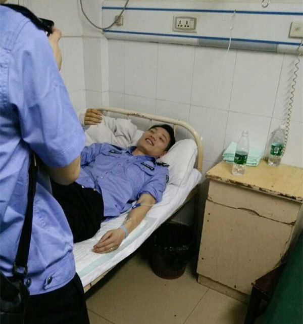 图为民警在医院看望受伤民警王子军
