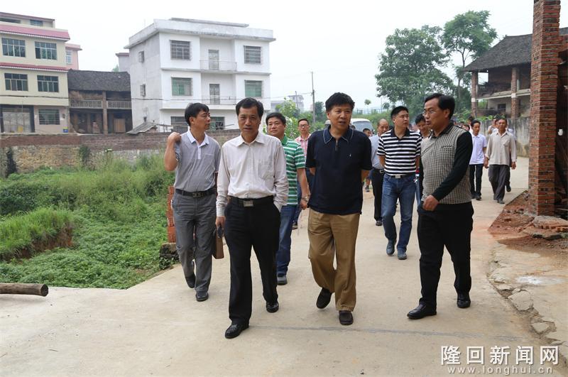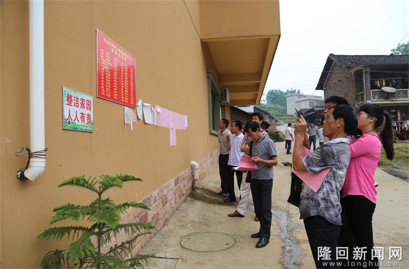 邵阳县政协主席李红平(前排左一)一行在隆回县政协主席黄和健(前排左二)的陪同下参观考察隆回县三阁司镇石马村环境卫生