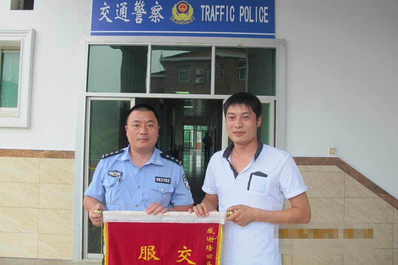 隆回新闻网讯(通讯员 彭晓艳)5月21日,隆回县横板桥镇村民陈某将一面锦旗送到了隆回交警大队横板桥中队,紧握民警的手连声说谢谢。