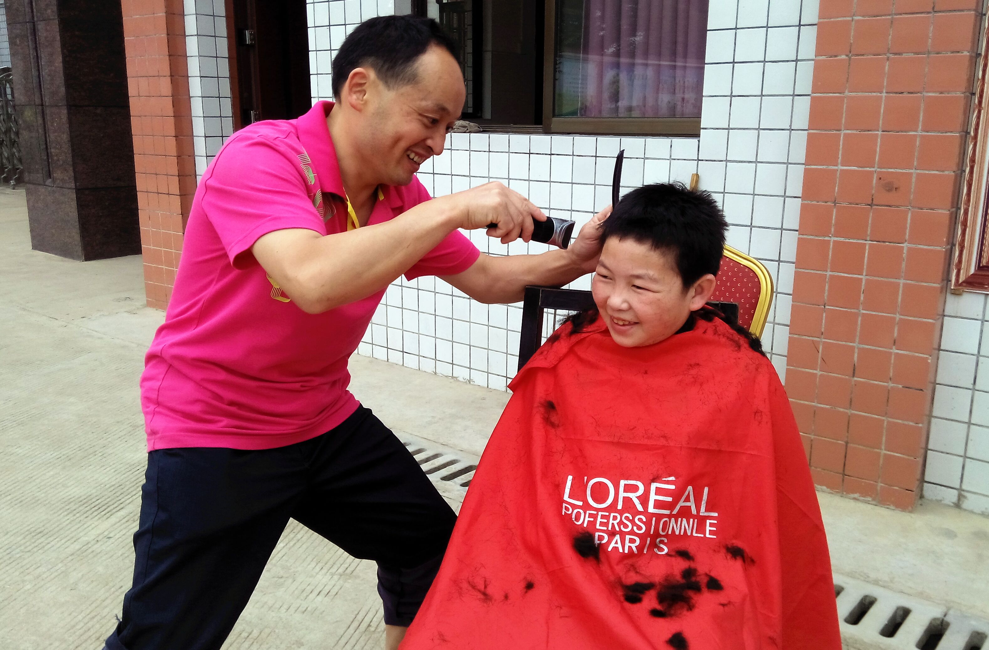隆回新闻网讯(通讯员 肖沛宇)5月26日清晨,隆回县政协委员、县特殊教育学校副校长刘向阳在给培智一班的贫困残疾学生理发。据了解,刘向阳在县特殊学校任教时期里,都会不定时给学校贫困残疾学生免费理发。学生们和学校老师都亲切的称呼他是“最可爱的政协委员。”