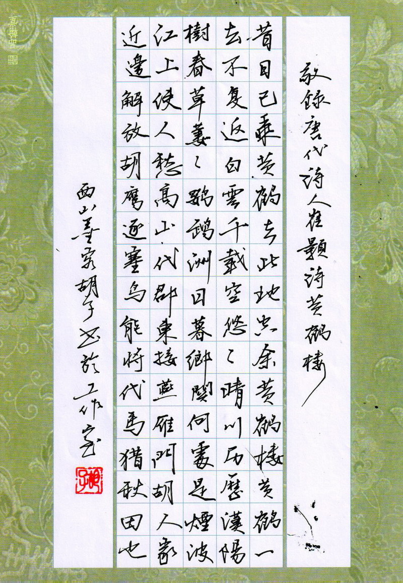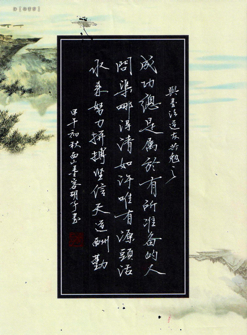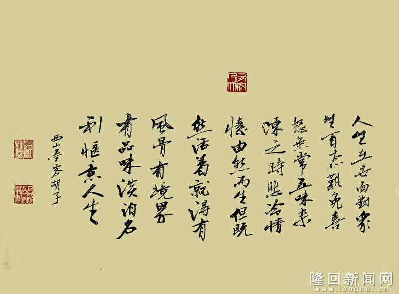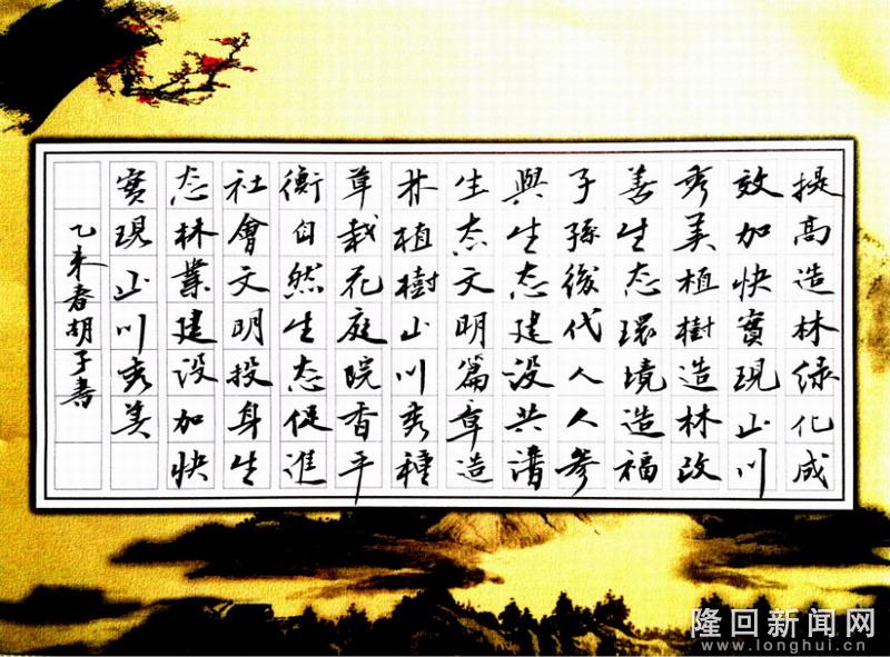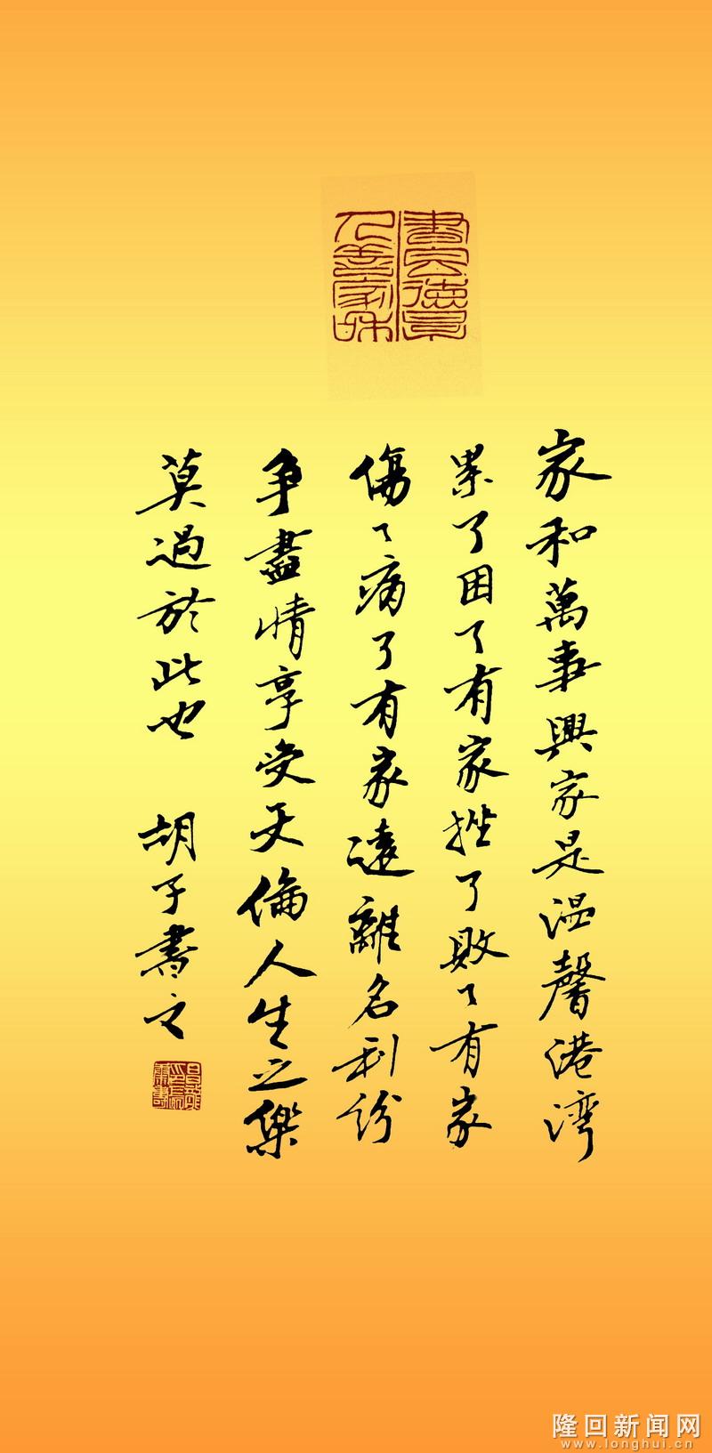 胡子,真名胡昌龙,自号西山墨客,1976年9月出生,中共党员,大学学历。现为湖南省书法家协会会员、隆回县演讲家协会主席、隆回县校外教育中心主任、隆回县书法家协会副主席兼秘书长。胡子研习书法20余年,笔耕不辍,尤以行书、楷书见长。其作品在各级各类大赛中获奖、展出或杂志整版刊发推介30余项(次),其中2007年获全国第九届世纪之星艺教展演活动行书一等奖、小楷一等奖。(联系电话13786909358)