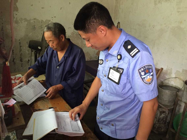 图为交警检查客运车安全台账